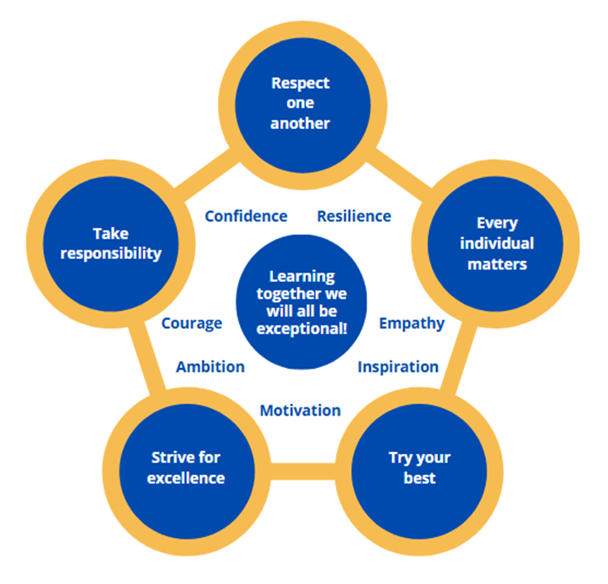 Our vision is ‘Learning Together, We Will All Be Exceptional!’ With our 5 core values, the vision and values drive our practice and our approach to education. We truly live our values: